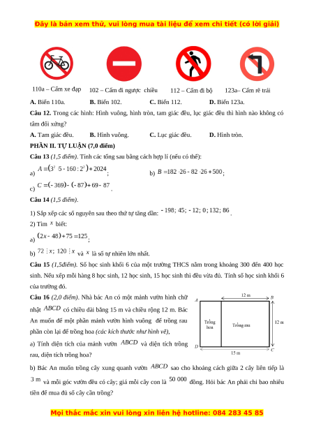 Môn: TOÁN – Lớp 6 ĐỀ CHÍNH THỨC