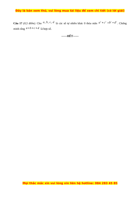 là các số tự nhiên khác 0 thỏa mãn . Chứng minh rằng là hợp số. ------HẾT------