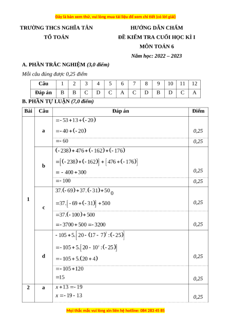 TRƯỜNG THCS NGHĨA TÂN HƯỚNG DẪN CHẤM TỔ TOÁN