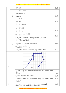 B. PHẦN TỰ LUẬN (7,0 điểm) Bài Câu Đáp án Điểm a 0,25 0,25 b 0,25 0,25 0 1 0,25 c 0,25 d 0,25 0,25 2 a 0,25