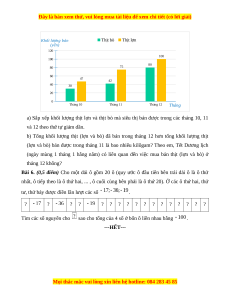Bài 5. (1,0 điểm) Biểu đồ dưới đây thống kê khối lượng thịt lợn và thịt bò bán được của