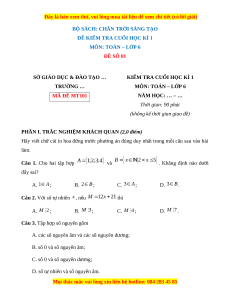 ĐỀ KIỂM TRA CUỐI HỌC KÌ 1 MÔN: TOÁN – LỚP 6 ĐỀ SỐ 01