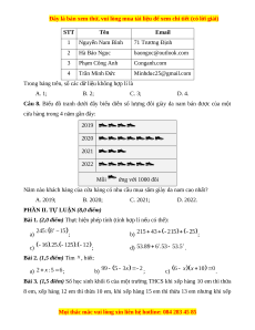 KIỂM TRA CUỐI HỌC KÌ 1 TRƯỜNG … MÔN: TOÁN – LỚP 6 MÃ ĐỀ MT101 NĂM HỌC: … – … Thời gian: 90 phút