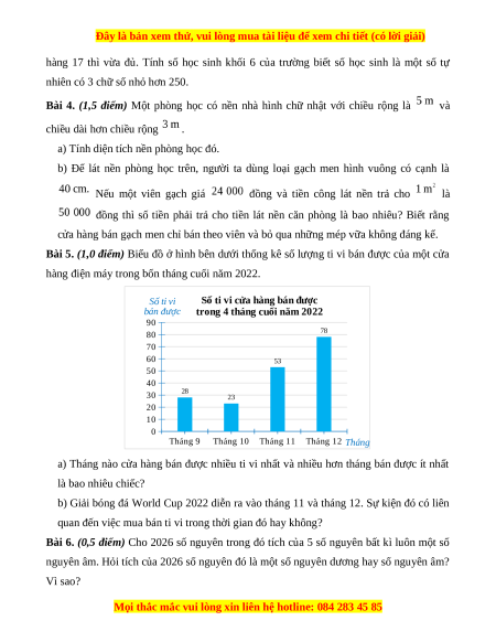 Bài 5. (1,0 điểm) Biểu đồ ở hình bên dưới thống kê số lượng ti vi bán được của một cửa