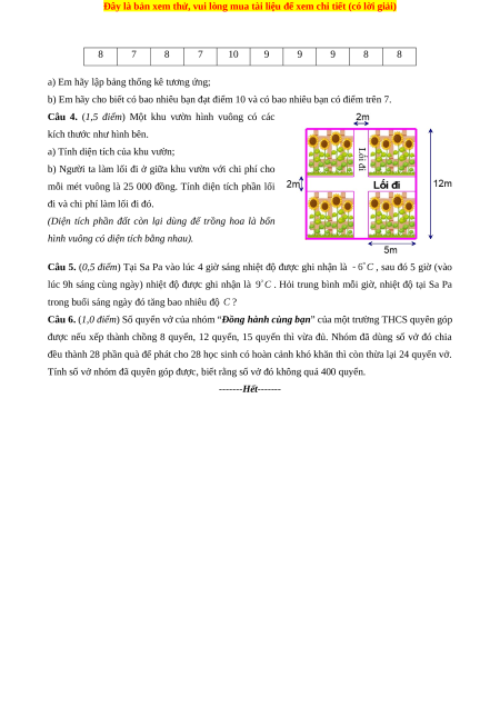 Câu 4. (1,5 điểm) Một khu vườn hình vuông có các