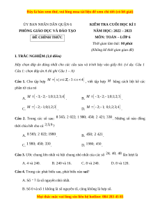NĂM HỌC: 2022 – 2023 ĐỀ CHÍNH THỨC MÔN: TOÁN – LỚP 6