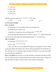 Câu 4. Số 6 không phải là ước của số tự nhiên nào dưới đây? A. 12. B. 6. C. 3. D. 18.