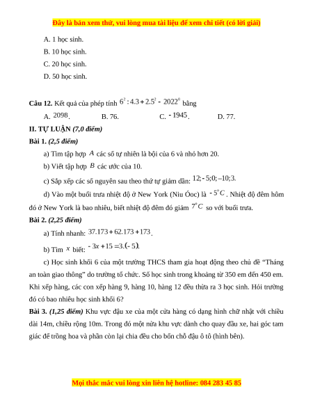Câu 12. Kết quả của phép tính bằng A. . B. 76. C. . D. 77.