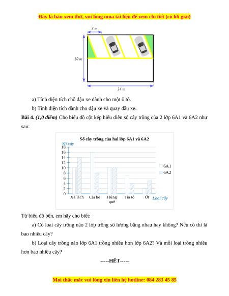 b) Loại cây trồng nào lớp 6A1 trồng nhiều hơn lớp 6A2? Và mỗi loại trồng nhiều hơn bao nhiêu cây? -----HẾT-----