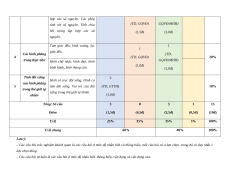 Tổng: Số câu 3 8 3 1 15 Điểm (1,5đ) (4,5đ) (3,5đ) (0,5đ) (10đ) Tỉ lệ 25% 35% 35% 5% 100% Tỉ lệ chung 60% 40% 100% Lưu ý:
