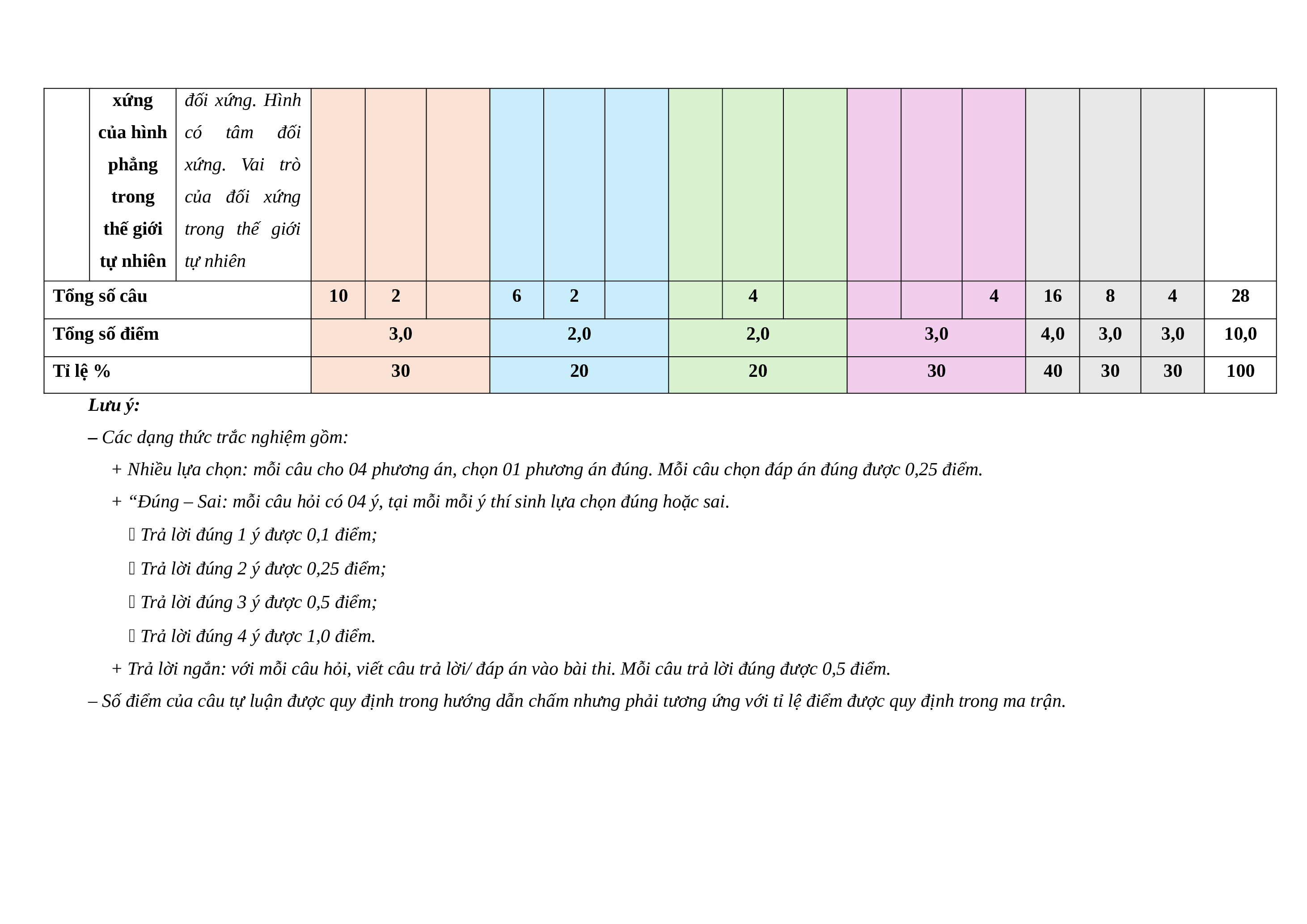 tự nhiên tự nhiên Tổng số câu 10 2 6 2 4 4 16 8 4 28 Tổng số điểm 3,0 2,0 2,0 3,0 4,0 3,0 3,0 10,0 Tỉ lệ % 30 20 20 30 40 30 30 100 Lưu ý: