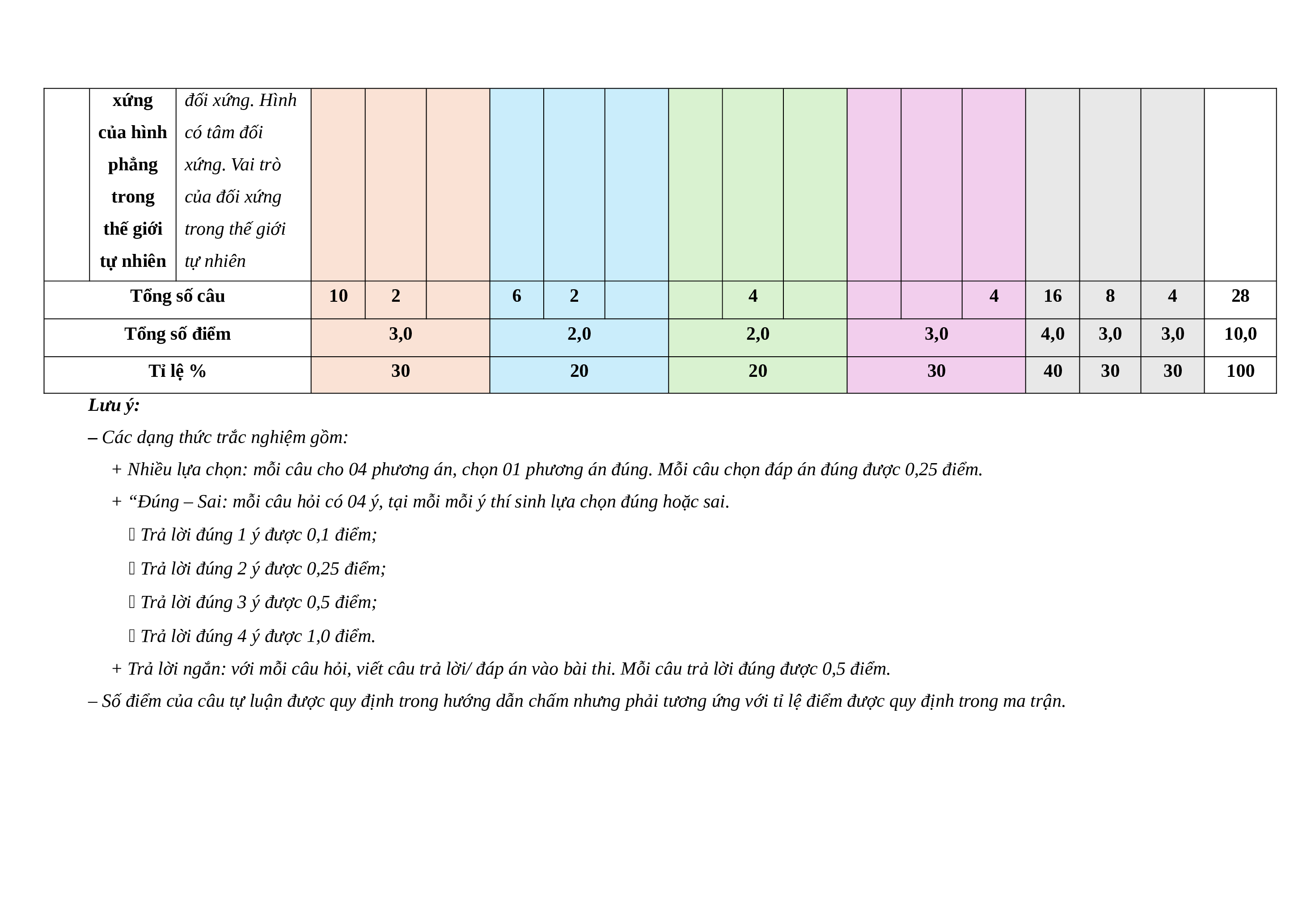 tự nhiên tự nhiên Tổng số câu 10 2 6 2 4 4 16 8 4 28 Tổng số điểm 3,0 2,0 2,0 3,0 4,0 3,0 3,0 10,0 Tỉ lệ % 30 20 20 30 40 30 30 100 Lưu ý: