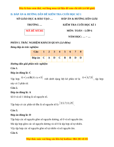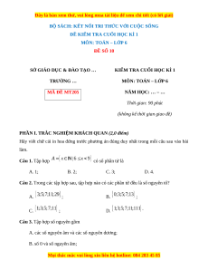 KIỂM TRA CUỐI HỌC KÌ 1 TRƯỜNG … MÔN: TOÁN – LỚP 6 MÃ ĐỀ MT205 NĂM HỌC: … – … Thời gian: 90 phút