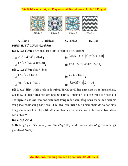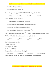 Câu 7. Cho các hình sau đây: (1) Đoạn thẳng ; (2) Tam giác đều ; (3) Hình thoi ;
