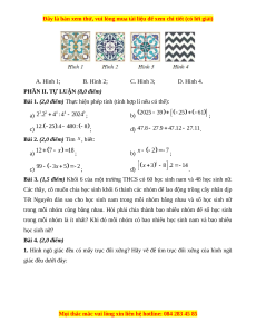 ĐỀ KIỂM TRA CUỐI HỌC KÌ 1 MÔN: TOÁN – LỚP 6 ĐỀ SỐ 10