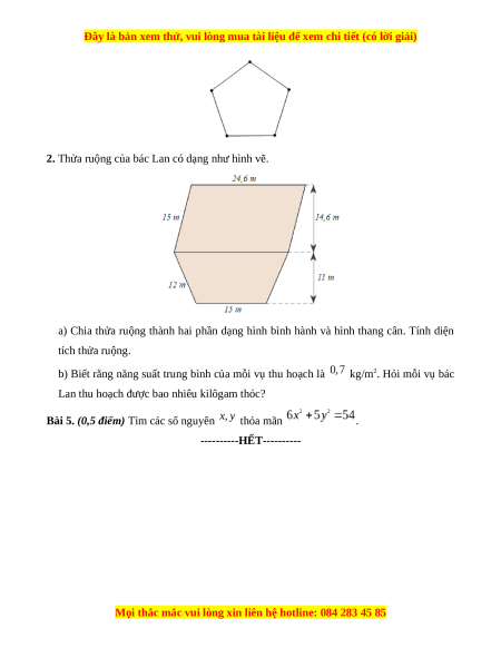 2. Thửa ruộng của bác Lan có dạng như hình vẽ.