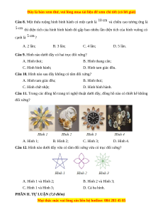 Câu 12. Hình nào dưới đây vừa có tâm đối xứng vừa có trục đối xứng? A. Hình 1 và Hình 2; B. Hình 2 và Hình 3; C. Hình 1 và Hình 3; D. Cả ba hình.