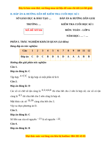 ĐỀ KIỂM TRA CUỐI HỌC KÌ 1 MÔN: TOÁN – LỚP 6 ĐỀ SỐ 04