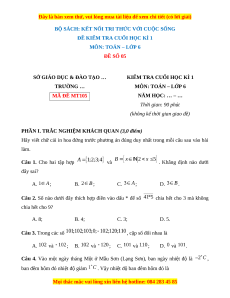 ĐỀ KIỂM TRA CUỐI HỌC KÌ 1 MÔN: TOÁN – LỚP 6 ĐỀ SỐ 05