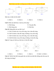 Câu 11. Trong các hình sau, hình nào có tâm đối xứng? A. Hình 1; B. Hình 2; C. Hình 3; D. Hình 1 và Hình 2.