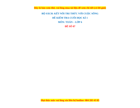 Đề thi cuối kì 1 Toán 6 Kết nối tri thức (Đề 7)