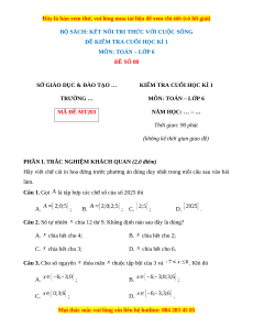 KIỂM TRA CUỐI HỌC KÌ 1 MÃ ĐỀ MT203 MÔN: TOÁN – LỚP 6 NĂM HỌC: … – …