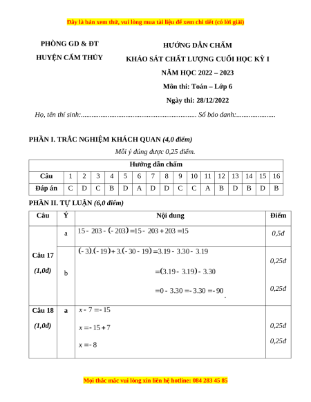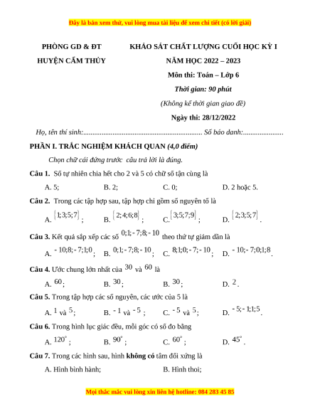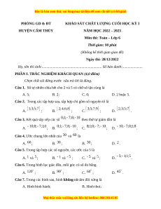 Môn thi: Toán – Lớp 6 Ngày thi: 28/12/2022