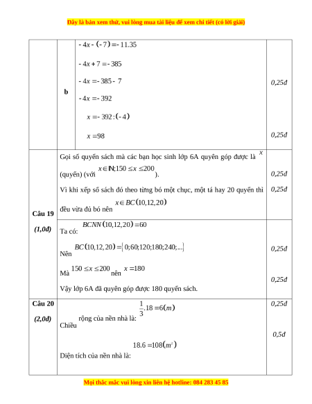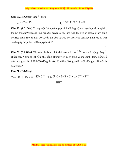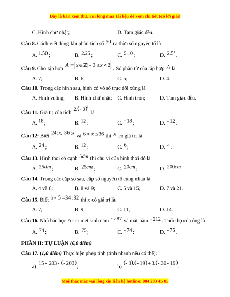 Môn thi: Toán – Lớp 6