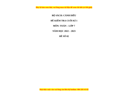 - Tailieugiaovien.com.vn giới thiệu bộ đề cuối học kì 1 Toán 7 bộ Cánh diều mới nhất nhằm giúp Giáo viên có thêm tài liệu tham khảo ra đề thi Toán lớp 7.
