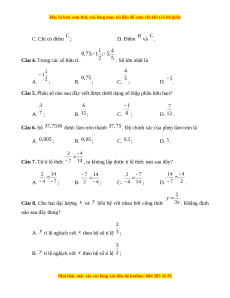 Câu 5. Phân số nào sau đây viết được dưới dạng số thập phân hữu hạn? A. ; B. ; C. ; D. . Câu 6. Số được làm tròn thành