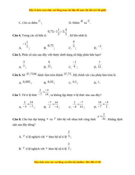 Câu 4. Trong các số hữu tỉ: . Số lớn nhất là A. ; B. ; C. ; D. .