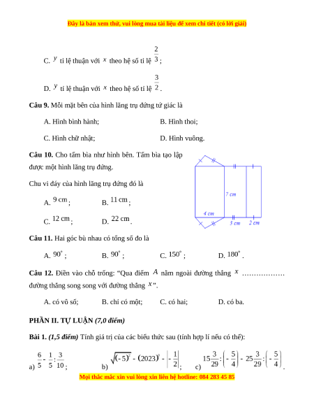 Chúng tôi đảm bảo đủ số lượng đề đã cam kết hoặc có thể nhiều hơn, tất cả có BẢN WORD, LỜI GIẢI CHI TIẾT và tải về dễ dàng.