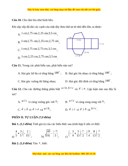 - Tailieugiaovien.com.vn giới thiệu bộ đề cuối học kì 1 Toán 7 bộ Cánh diều mới nhất nhằm giúp Giáo viên có thêm tài liệu tham khảo ra đề thi Toán lớp 7.