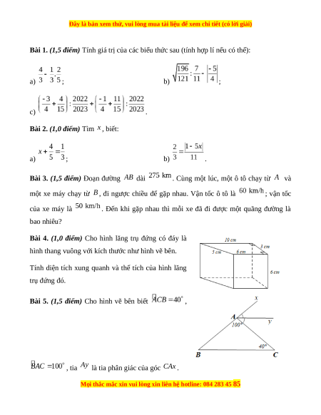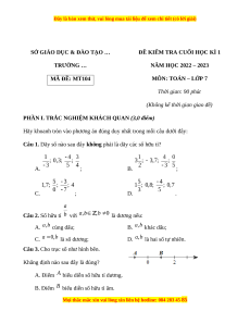 NĂM HỌC 2022 – 2023 MÃ ĐỀ: MT104 MÔN: TOÁN – LỚP 7 Thời gian: 90 phút