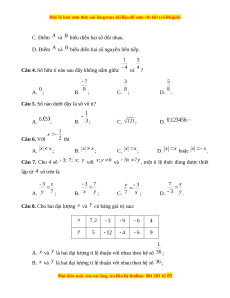 Câu 5. Số nào dưới đây là số vô tỉ? A. ; B. ; C. ; D. Câu 6. Với thì A. ; B. ; C. ; D. hoặc . Câu 7. Cho 4 số với và