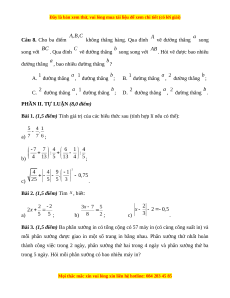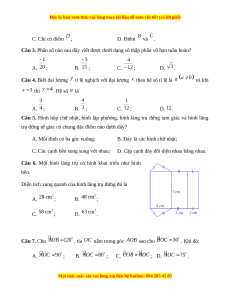Diện tích xung quanh của hình lăng trụ đứng đó là A. ; B. ; C. ; D. . Câu 7. Cho , tia nằm trong góc sao cho . Khi đó: A. ; B. ; C. ; D. .