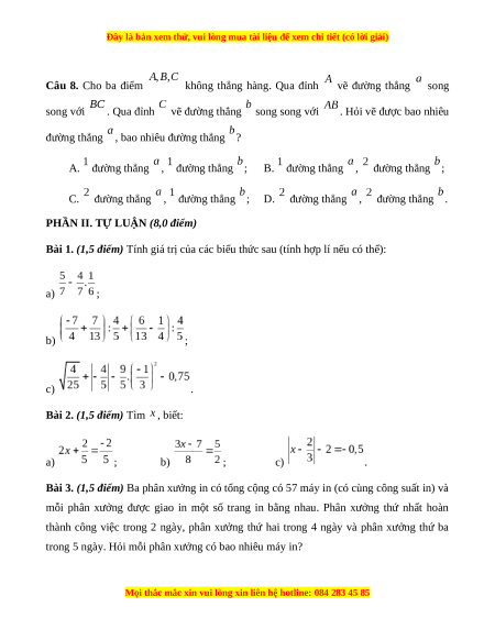 Bài 1. (1,5 điểm) Tính giá trị của các biểu thức sau (tính hợp lí nếu có thể): a) ; b) ; c) .