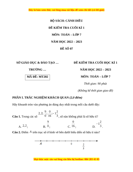 - Tailieugiaovien.com.vn giới thiệu bộ đề cuối học kì 1 Toán 7 bộ Cánh diều mới nhất nhằm giúp Giáo viên có thêm tài liệu tham khảo ra đề thi Toán lớp 7.