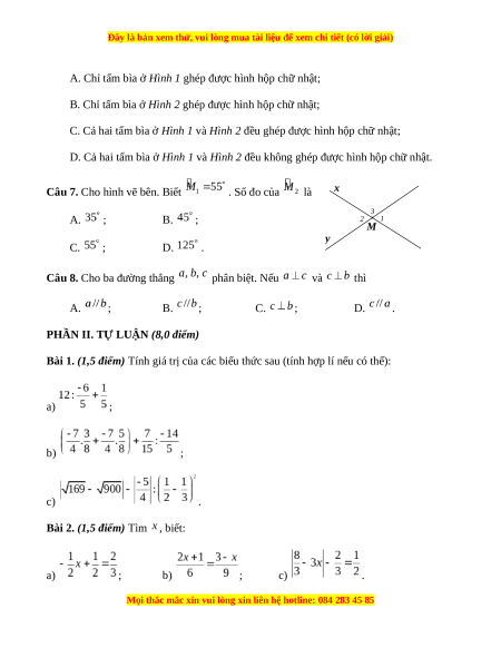 Câu 7. Cho hình vẽ bên. Biết . Số đo của là x 3 A. ; B. ; 2 1 M y C. ; D. .