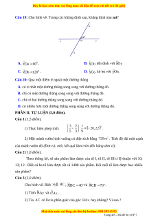 Câu 20: Qua một điểm ở ngoài một đường thẳng
