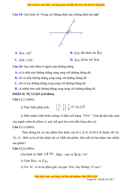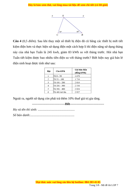 Đây là bản xem thử, vui lòng mua tài liệu để xem chi tiết (có lời giải)