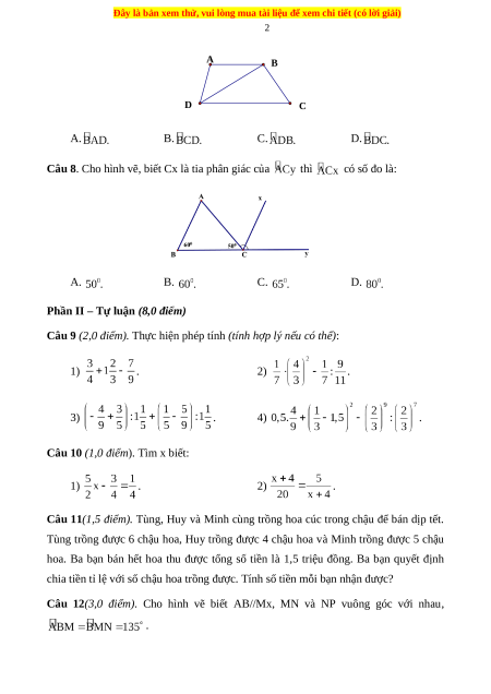 Đây là bản xem thử, vui lòng mua tài liệu để xem chi tiết (có lời giải)