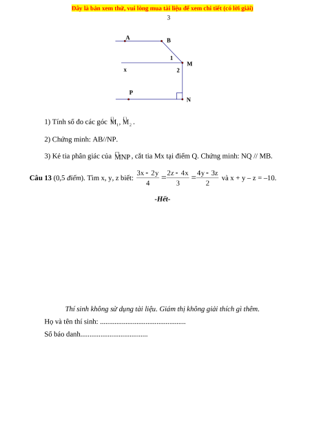 Câu 12(3,0 điểm). Cho hình vẽ biết AB//Mx, MN và NP vuông góc với nhau, .