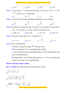 I – PHẦN I: Bài tập trắc nghiệm (3 điểm) Câu 1. có kết quả là: A. . B. . C. . D. . Lời giải Chọn B Ta có vì và . Câu 2. Cho ,