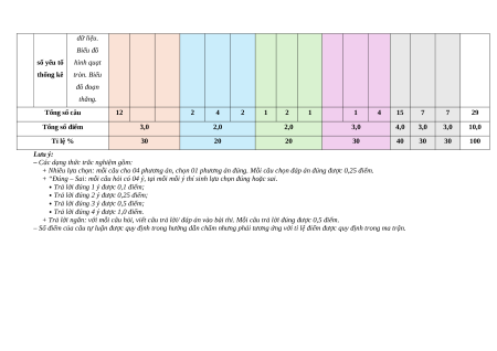 Chương Thu thập và 3 2 2 3 5 2 0 17,5% 5. Một phân loại dữ liệu. Biểu đồ số yếu tố hình quạt thống kê tròn. Biểu đồ đoạn thẳng. Tổng số câu 12 2 4 2 1 2 1 1 4 15 7 7 29 Tổng số điểm 3,0 2,0 2,0 3,0 4,0 3,0 3,0 10,0 Tỉ lệ % 30 20 20 30 40 30 30 100 Lưu ý:
