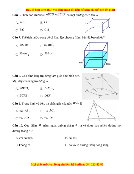 Đây là bản xem thử, vui lòng mua tài liệu để xem chi tiết (có lời giải)