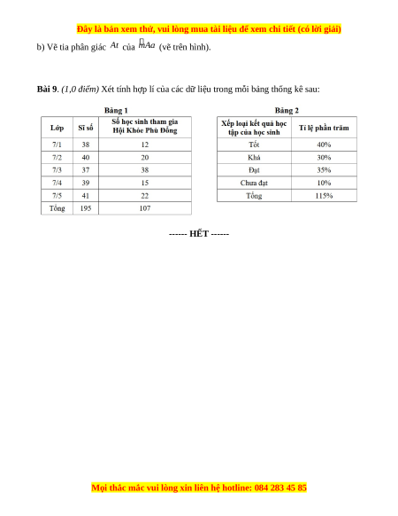 Bài 9. (1,0 điểm) Xét tính hợp lí của các dữ liệu trong mỗi bảng thống kê sau: