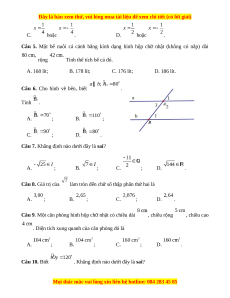 . Diện tích xung quanh của căn phòng đó là A. ; B. ; C. ; D. . Câu 10. Biết
