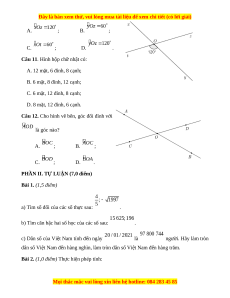 Câu 12. Cho hình vẽ bên, góc đối đỉnh với