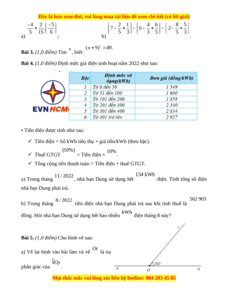 Bài 4. (1,0 điểm) Định mức giá điện sinh hoạt năm 2022 như sau: